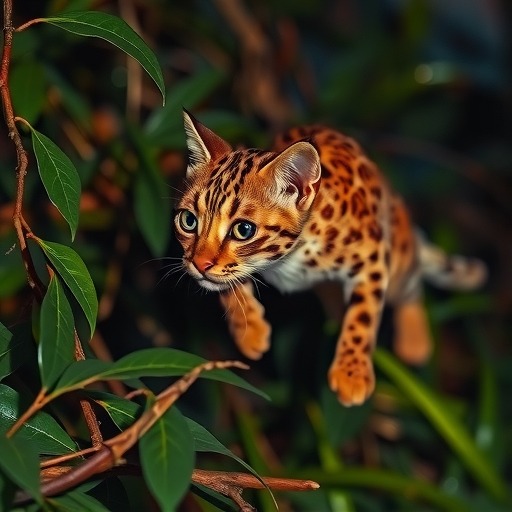 尽管体型小巧,但锈斑豹猫具有惊人的跳跃能力,可以一次跳跃超过3米的距离,轻松捕捉高空中的飞鸟。